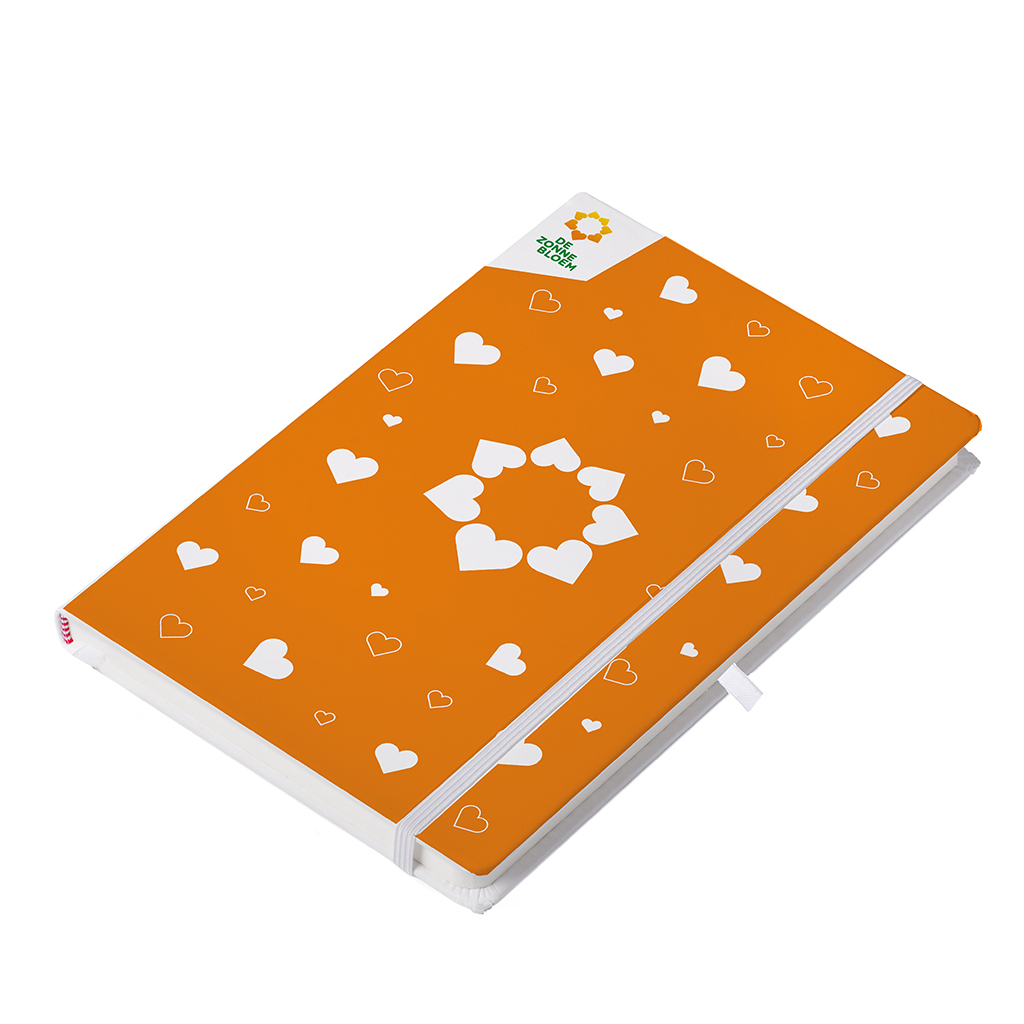 Het notitieboekje heeft een harde kaft, elastieksluiting en penhouder.