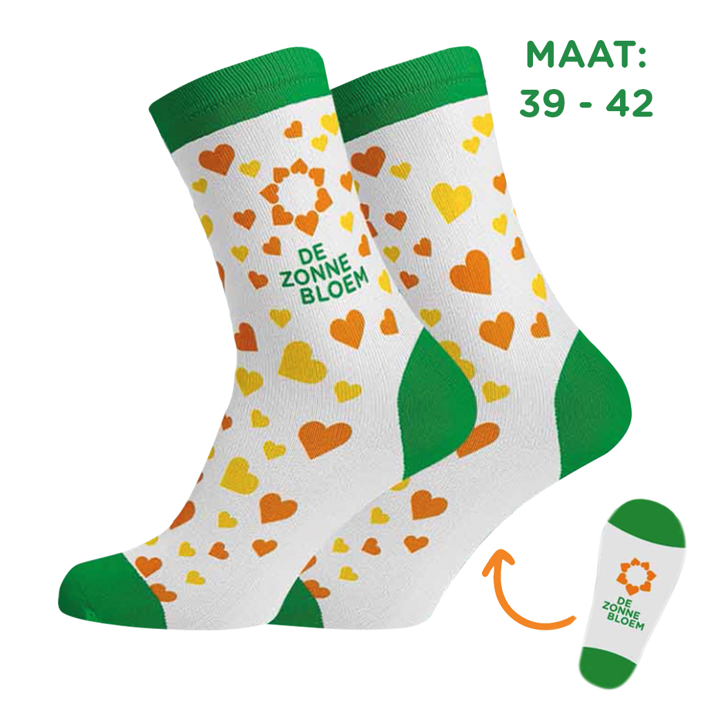 Nieuw in ons assortiment! De Zonnebloem sokken. Een prachtig paar sokken met een vrolijk dessin waar u in gezien mag worden!